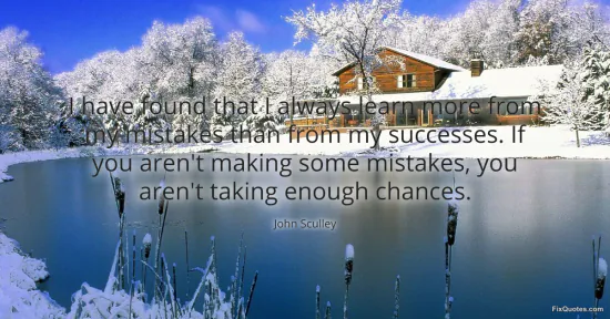 Sculley, John. "I have found that I always learn more from my mistakes than from my successes. If you aren't making some mistakes, you aren't taking enough chances." FixQuotes. January 16, 2026. https://fixquotes.com/quotes/i-have-found-that-i-always-learn-more-from-my-125517/.