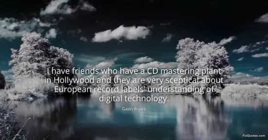 Bryars, Gavin. (2026, January 15). I have friends who have a CD mastering plant in Hollywood and they are very sceptical about European record labels' understanding of digital technology. FixQuotes. https://fixquotes.com/quotes/i-have-friends-who-have-a-cd-mastering-plant-in-150655/