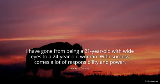 Carlton, Vanessa. "I have gone from being a 21-year-old with wide eyes to a 24-year-old woman. With success comes a lot of responsibility and power." FixQuotes. January 15, 2026. https://fixquotes.com/quotes/i-have-gone-from-being-a-21-year-old-with-wide-154249/.
