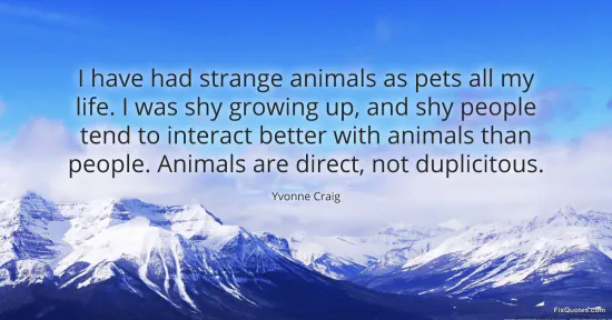 Craig, Yvonne. (2026, January 16). I have had strange animals as pets all my life. I was shy growing up, and shy people tend to interact better with animals than people. Animals are direct, not duplicitous. FixQuotes. https://fixquotes.com/quotes/i-have-had-strange-animals-as-pets-all-my-life-i-108504/