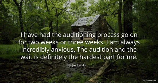 Lando, Joe. (2026, January 17). I have had the auditioning process go on for two weeks or three weeks. I am always incredibly anxious. The audition and the wait is definitely the hardest part for me. FixQuotes. https://fixquotes.com/quotes/i-have-had-the-auditioning-process-go-on-for-two-50246/