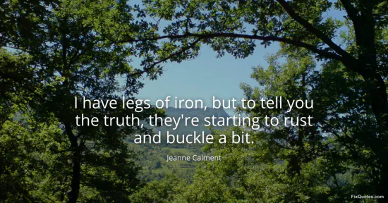 Calment, Jeanne. "I have legs of iron, but to tell you the truth, they're starting to rust and buckle a bit." FixQuotes. January 18, 2026. https://fixquotes.com/quotes/i-have-legs-of-iron-but-to-tell-you-the-truth-11894/.