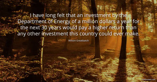 Greatbatch, Wilson. "I have long felt that an investment by the Department of Energy of a million dollars a year for the next 30 years would pay a higher return than any other investment this country could ever make." FixQuotes. January 16, 2026. https://fixquotes.com/quotes/i-have-long-felt-that-an-investment-by-the-85267/.