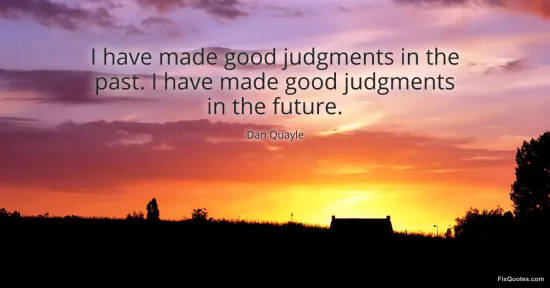 Quayle, Dan. "I have made good judgments in the past. I have made good judgments in the future." FixQuotes. January 18, 2026. https://fixquotes.com/quotes/i-have-made-good-judgments-in-the-past-i-have-1294/.