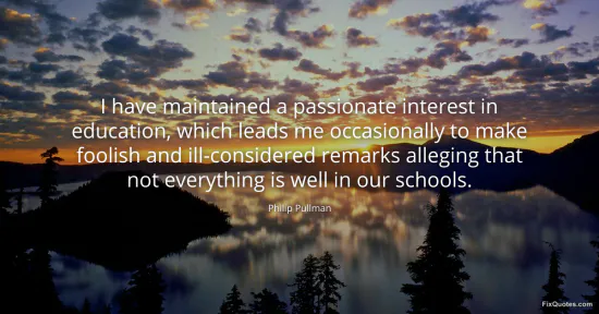"I have maintained a passionate interest in education, which leads me occasionally to make foolish and ill-considered remarks alleging that not everything is well in our schools"