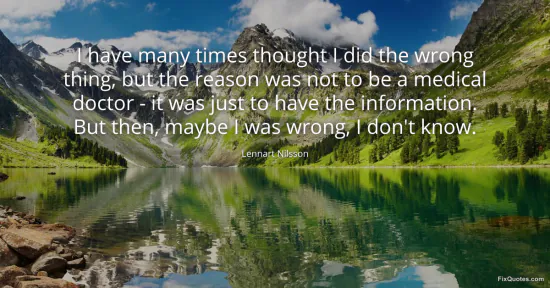 Nilsson, Lennart. (2026, January 15). I have many times thought I did the wrong thing, but the reason was not to be a medical doctor - it was just to have the information. But then, maybe I was wrong, I don't know. FixQuotes. https://fixquotes.com/quotes/i-have-many-times-thought-i-did-the-wrong-thing-158873/