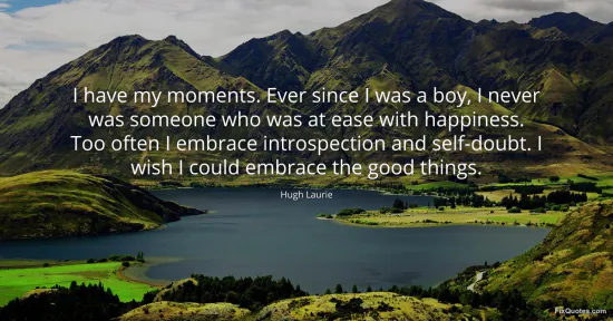Laurie, Hugh. "I have my moments. Ever since I was a boy, I never was someone who was at ease with happiness. Too often I embrace introspection and self-doubt. I wish I could embrace the good things." FixQuotes. January 17, 2026. https://fixquotes.com/quotes/i-have-my-moments-ever-since-i-was-a-boy-i-never-56280/.