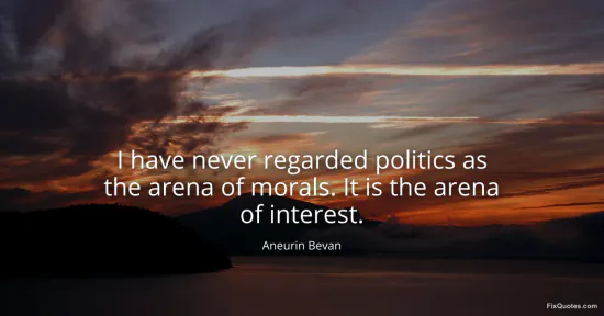 Bevan, Aneurin. "I have never regarded politics as the arena of morals. It is the arena of interest." FixQuotes. January 17, 2026. https://fixquotes.com/quotes/i-have-never-regarded-politics-as-the-arena-of-46069/.