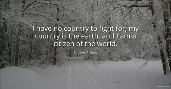 Debs, Eugene V. "I have no country to fight for; my country is the earth, and I am a citizen of the world." FixQuotes. January 14, 2026. https://fixquotes.com/quotes/i-have-no-country-to-fight-for-my-country-is-the-137360/.