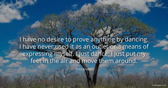 Astaire, Fred. (2026, January 15). I have no desire to prove anything by dancing. I have never used it as an outlet or a means of expressing myself. I just dance. I just put my feet in the air and move them around. FixQuotes. https://fixquotes.com/quotes/i-have-no-desire-to-prove-anything-by-dancing-i-76418/