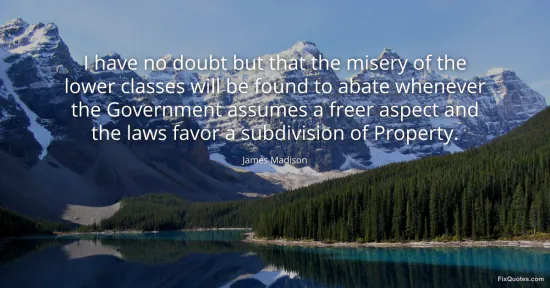 Madison, James. "I have no doubt but that the misery of the lower classes will be found to abate whenever the Government assumes a freer aspect and the laws favor a subdivision of Property." FixQuotes. January 18, 2026. https://fixquotes.com/quotes/i-have-no-doubt-but-that-the-misery-of-the-lower-23855/.