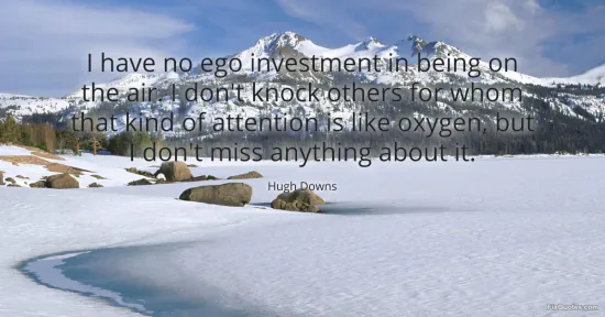Downs, Hugh. "I have no ego investment in being on the air. I don't knock others for whom that kind of attention is like oxygen, but I don't miss anything about it." FixQuotes. January 15, 2026. https://fixquotes.com/quotes/i-have-no-ego-investment-in-being-on-the-air-i-169437/.