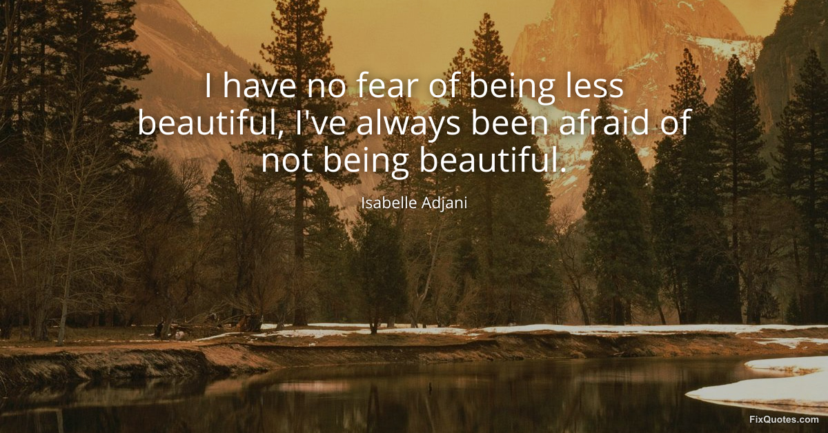 Adjani, Isabelle. "I have no fear of being less beautiful, I've always been afraid of not being beautiful." FixQuotes. January 15, 2026. https://fixquotes.com/quotes/i-have-no-fear-of-being-less-beautiful-ive-always-82929/.