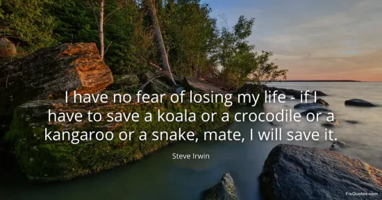 Irwin, Steve. (2026, January 15). I have no fear of losing my life - if I have to save a koala or a crocodile or a kangaroo or a snake, mate, I will save it. FixQuotes. https://fixquotes.com/quotes/i-have-no-fear-of-losing-my-life-if-i-have-to-151451/