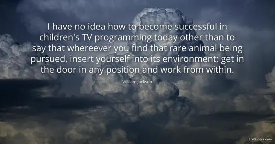 Jackson, William. (2026, February 17). I have no idea how to become successful in children's TV programming today other than to say that whereever you find that rare animal being pursued, insert yourself into its environment; get in the door in any position and work from within. FixQuotes. https://fixquotes.com/quotes/i-have-no-idea-how-to-become-successful-in-145546/