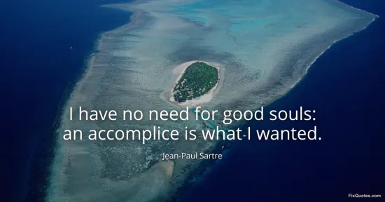 Sartre, Jean-Paul. (2026, January 15). I have no need for good souls: an accomplice is what I wanted. FixQuotes. https://fixquotes.com/quotes/i-have-no-need-for-good-souls-an-accomplice-is-7607/