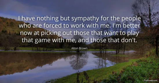 Brown, Alton. (2026, January 17). I have nothing but sympathy for the people who are forced to work with me. I'm better now at picking out those that want to play that game with me, and those that don't. FixQuotes. https://fixquotes.com/quotes/i-have-nothing-but-sympathy-for-the-people-who-38409/