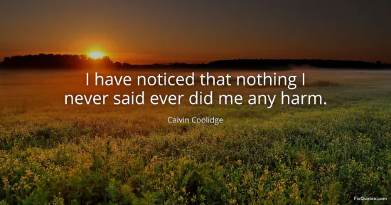 Coolidge, Calvin. (2026, January 17). I have noticed that nothing I never said ever did me any harm. FixQuotes. https://fixquotes.com/quotes/i-have-noticed-that-nothing-i-never-said-ever-did-30362/