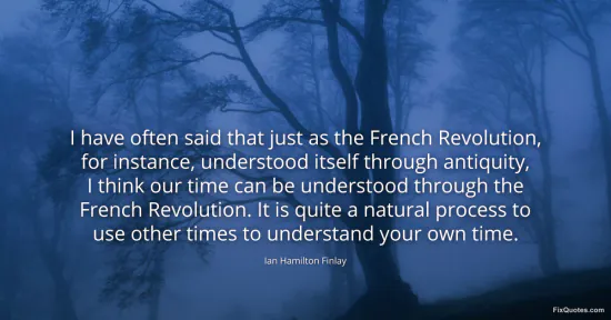 Finlay, Ian Hamilton. "I have often said that just as the French Revolution, for instance, understood itself through antiquity, I think our time can be understood through the French Revolution. It is quite a natural process to use other times to understand your own time." FixQuotes. February 20, 2026. https://fixquotes.com/quotes/i-have-often-said-that-just-as-the-french-20992/.