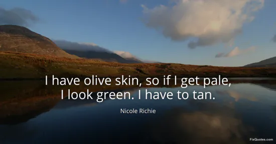 Richie, Nicole. "I have olive skin, so if I get pale, I look green. I have to tan." FixQuotes. January 15, 2026. https://fixquotes.com/quotes/i-have-olive-skin-so-if-i-get-pale-i-look-green-i-128384/.