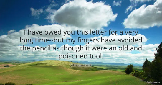 Steinbeck, John. (2026, February 20). I have owed you this letter for a very long time--but my fingers have avoided the pencil as though it were an old and poisoned tool. FixQuotes. https://fixquotes.com/quotes/i-have-owed-you-this-letter-for-a-very-long-26484/