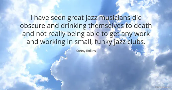 Rollins, Sonny. (2026, January 15). I have seen great jazz musicians die obscure and drinking themselves to death and not really being able to get any work and working in small, funky jazz clubs. FixQuotes. https://fixquotes.com/quotes/i-have-seen-great-jazz-musicians-die-obscure-and-153298/
