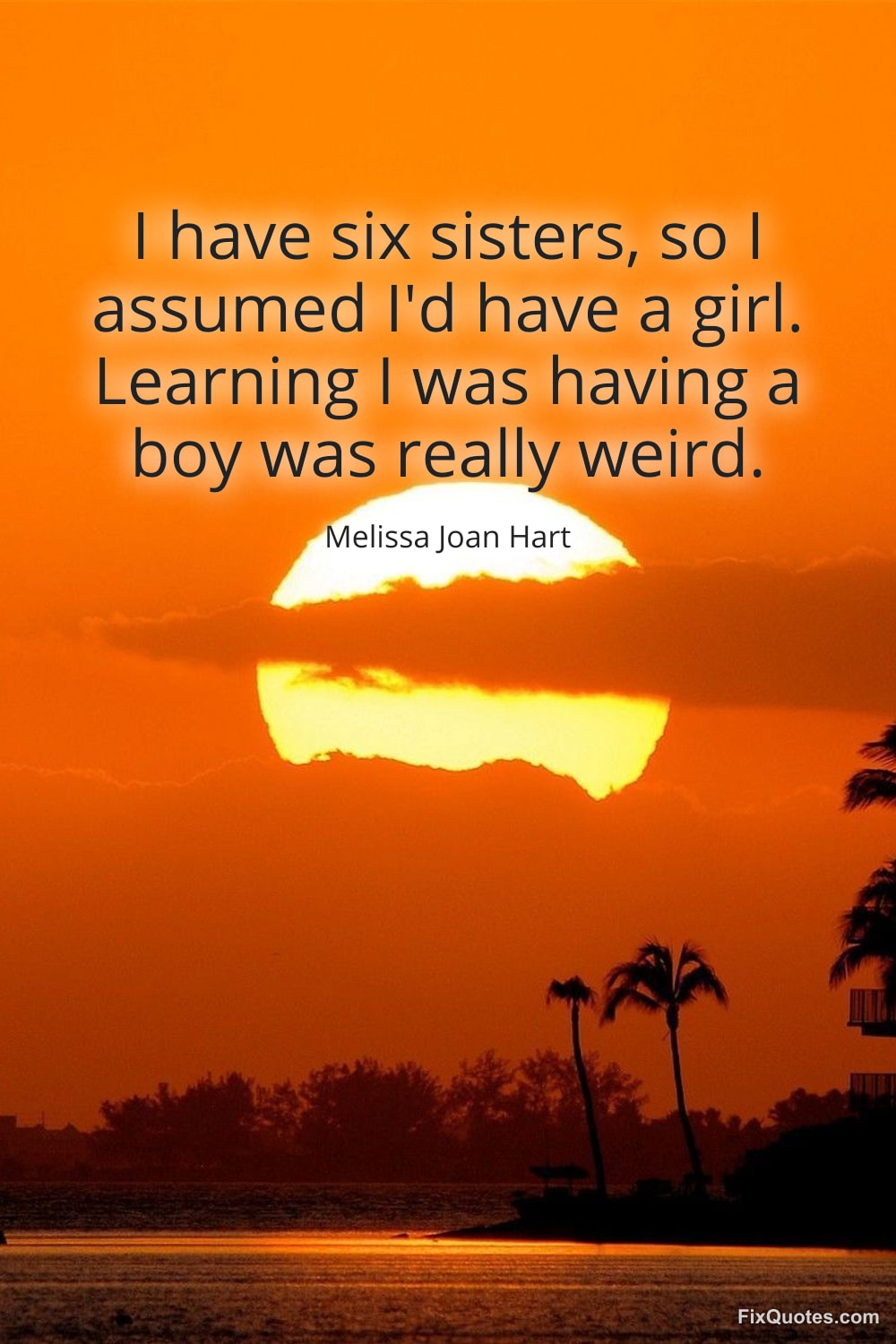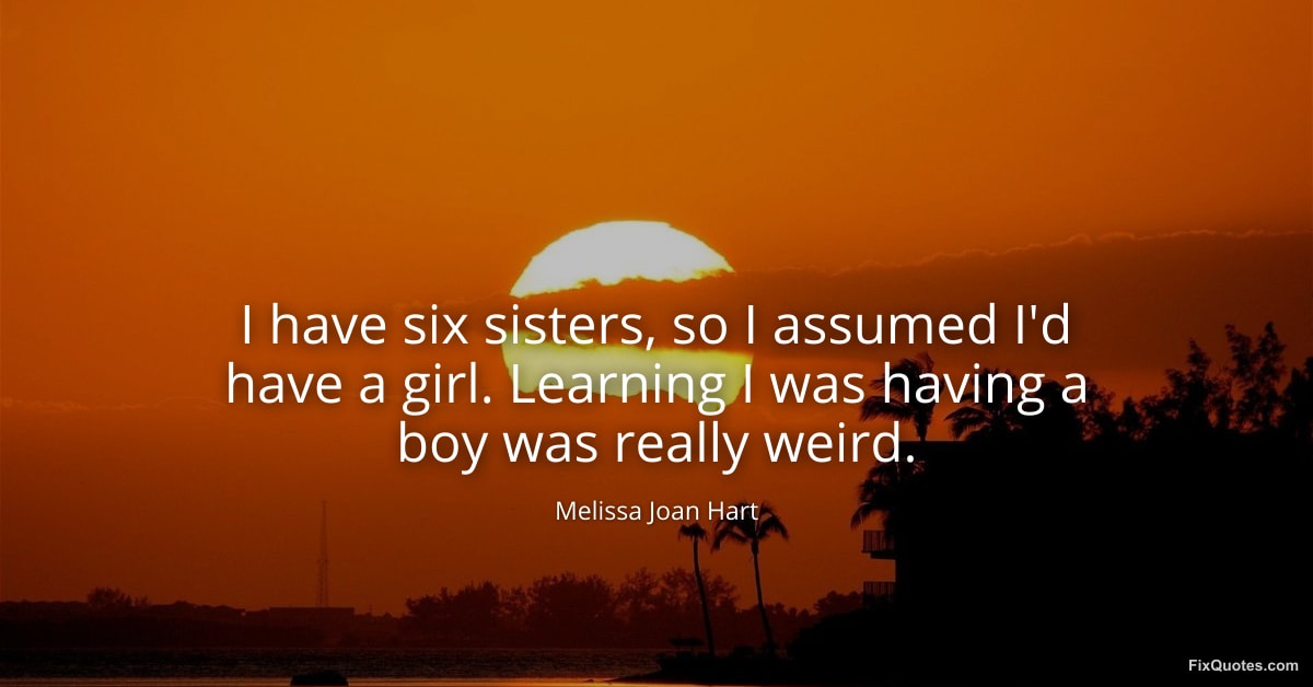 Hart, Melissa Joan. (2026, January 17). I have six sisters, so I assumed I'd have a girl. Learning I was having a boy was really weird. FixQuotes. https://fixquotes.com/quotes/i-have-six-sisters-so-i-assumed-id-have-a-girl-57853/