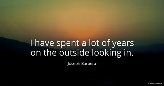 Barbera, Joseph. (2026, January 18). I have spent a lot of years on the outside looking in. FixQuotes. https://fixquotes.com/quotes/i-have-spent-a-lot-of-years-on-the-outside-18665/