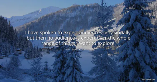 "I have spoken to expert audiences occasionally, but then no audience is expert over the whole range of things I want to explore"