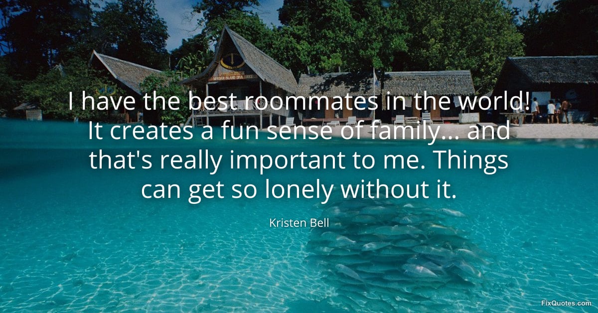 Bell, Kristen. "I have the best roommates in the world! It creates a fun sense of family... and that's really important to me. Things can get so lonely without it." FixQuotes. January 15, 2026. https://fixquotes.com/quotes/i-have-the-best-roommates-in-the-world-it-creates-161154/.
