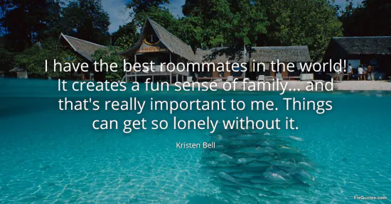 Bell, Kristen. (2026, January 15). I have the best roommates in the world! It creates a fun sense of family... and that's really important to me. Things can get so lonely without it. FixQuotes. https://fixquotes.com/quotes/i-have-the-best-roommates-in-the-world-it-creates-161154/