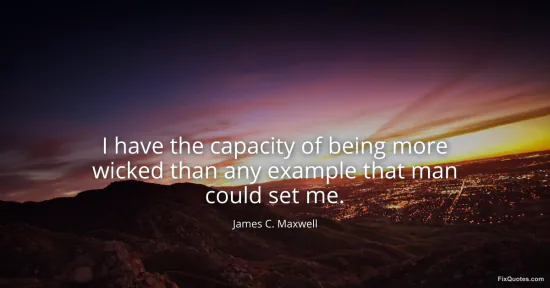 Maxwell, James C. "I have the capacity of being more wicked than any example that man could set me." FixQuotes. January 17, 2026. https://fixquotes.com/quotes/i-have-the-capacity-of-being-more-wicked-than-any-56977/.