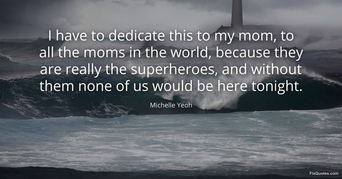 Yeoh, Michelle. (2026, February 14). I have to dedicate this to my mom, to all the moms in the world, because they are really the superheroes, and without them none of us would be here tonight. FixQuotes. https://fixquotes.com/quotes/i-have-to-dedicate-this-to-my-mom-to-all-the-moms-185321/