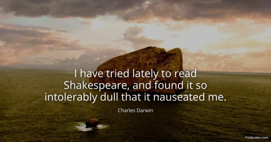 Darwin, Charles. "I have tried lately to read Shakespeare, and found it so intolerably dull that it nauseated me." FixQuotes. January 17, 2026. https://fixquotes.com/quotes/i-have-tried-lately-to-read-shakespeare-and-found-30487/.