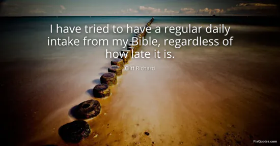 Richard, Cliff. (2026, January 17). I have tried to have a regular daily intake from my Bible, regardless of how late it is. FixQuotes. https://fixquotes.com/quotes/i-have-tried-to-have-a-regular-daily-intake-from-46714/