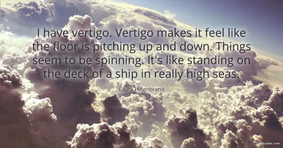 Hillenbrand, Laura. (2026, January 16). I have vertigo. Vertigo makes it feel like the floor is pitching up and down. Things seem to be spinning. It's like standing on the deck of a ship in really high seas. FixQuotes. https://fixquotes.com/quotes/i-have-vertigo-vertigo-makes-it-feel-like-the-99021/