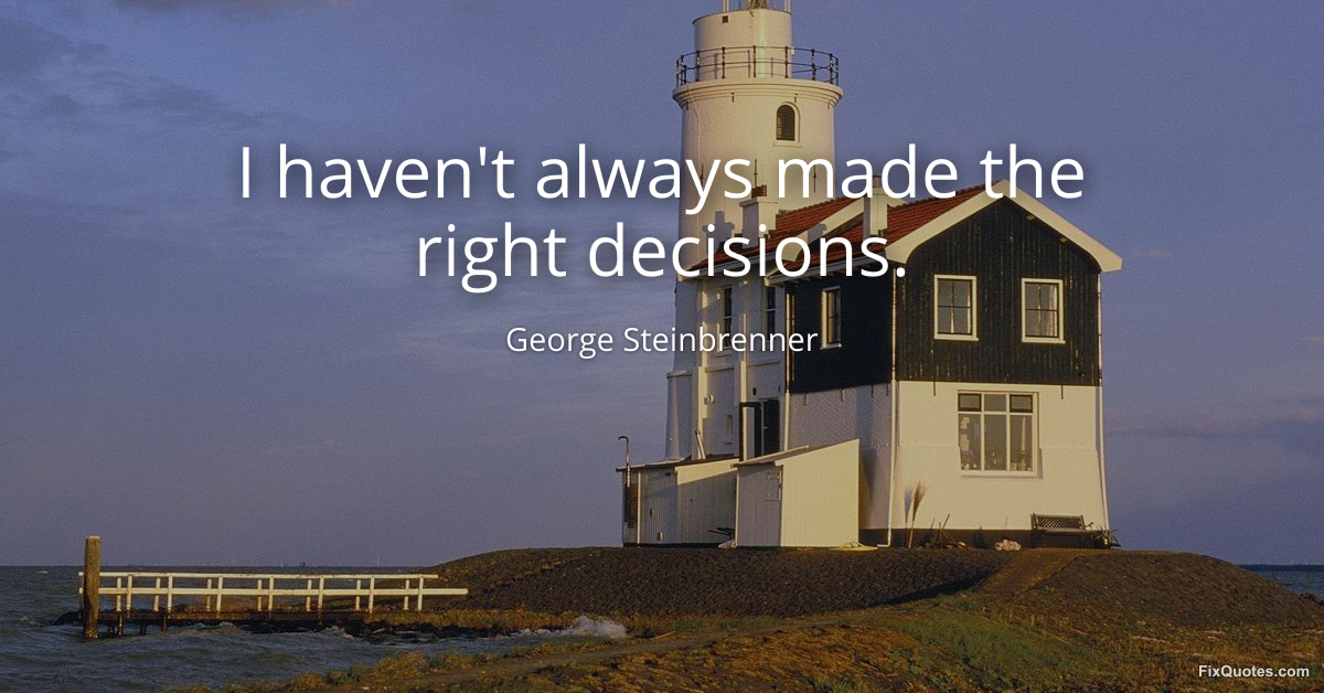 Steinbrenner, George. "I haven't always made the right decisions." FixQuotes. January 15, 2026. https://fixquotes.com/quotes/i-havent-always-made-the-right-decisions-143886/.