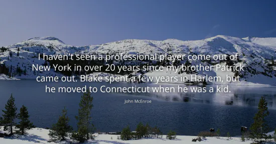 McEnroe, John. "I haven't seen a professional player come out of New York in over 20 years since my brother Patrick came out. Blake spent a few years in Harlem, but he moved to Connecticut when he was a kid." FixQuotes. January 15, 2026. https://fixquotes.com/quotes/i-havent-seen-a-professional-player-come-out-of-144196/.