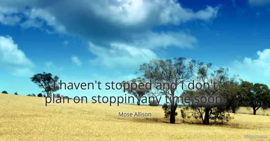 Allison, Mose. (2026, January 16). I haven't stopped and I don't plan on stoppin' any time soon. FixQuotes. https://fixquotes.com/quotes/i-havent-stopped-and-i-dont-plan-on-stoppin-any-84410/