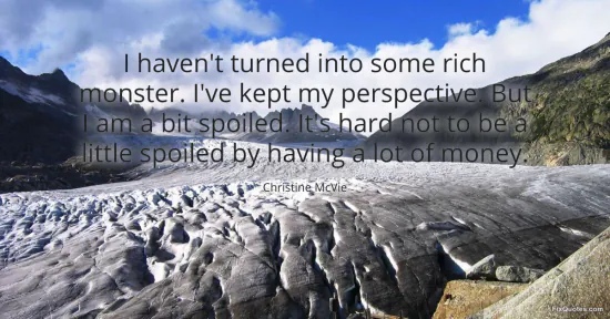McVie, Christine. "I haven't turned into some rich monster. I've kept my perspective. But I am a bit spoiled. It's hard not to be a little spoiled by having a lot of money." FixQuotes. January 16, 2026. https://fixquotes.com/quotes/i-havent-turned-into-some-rich-monster-ive-kept-117244/.