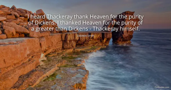 Smith, Goldwin. "I heard Thackeray thank Heaven for the purity of Dickens. I thanked Heaven for the purity of a greater than Dickens - Thackeray himself." FixQuotes. January 17, 2026. https://fixquotes.com/quotes/i-heard-thackeray-thank-heaven-for-the-purity-of-74508/.