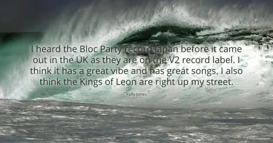 The language is bluntly evaluative - "great vibe", "great songs" - which reads as intentionally unprecious. Jones isn't performing a theory of indie rock; he's signaling allegiance. Bloc Party and Kings of Leon, in the mid-2000s conversation this kind of quote evokes, represented a particular strain of guitar music that was sleek, urgent, and stadium-curious without abandoning "cool". By endorsing them, Jones is nudging himself (and his own band) into that same lane: contemporary, credible, not stuck in yesterday's Britpop hangover.