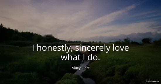 Hart, Mary. "I honestly, sincerely love what I do." FixQuotes. January 16, 2026. https://fixquotes.com/quotes/i-honestly-sincerely-love-what-i-do-130002/.