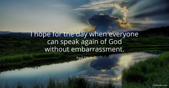 Tillich, Paul. (2026, January 18). I hope for the day when everyone can speak again of God without embarrassment. FixQuotes. https://fixquotes.com/quotes/i-hope-for-the-day-when-everyone-can-speak-again-22969/