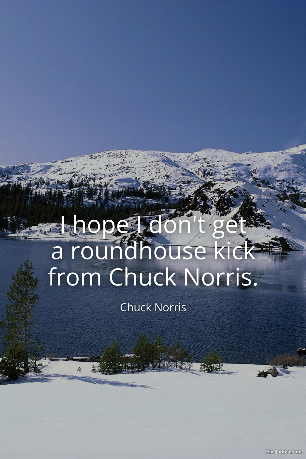 Norris, Chuck. "I hope I don't get a roundhouse kick from Chuck Norris." FixQuotes. March 20, 2026. https://fixquotes.com/quotes/i-hope-i-dont-get-a-roundhouse-kick-from-chuck-186243/.
