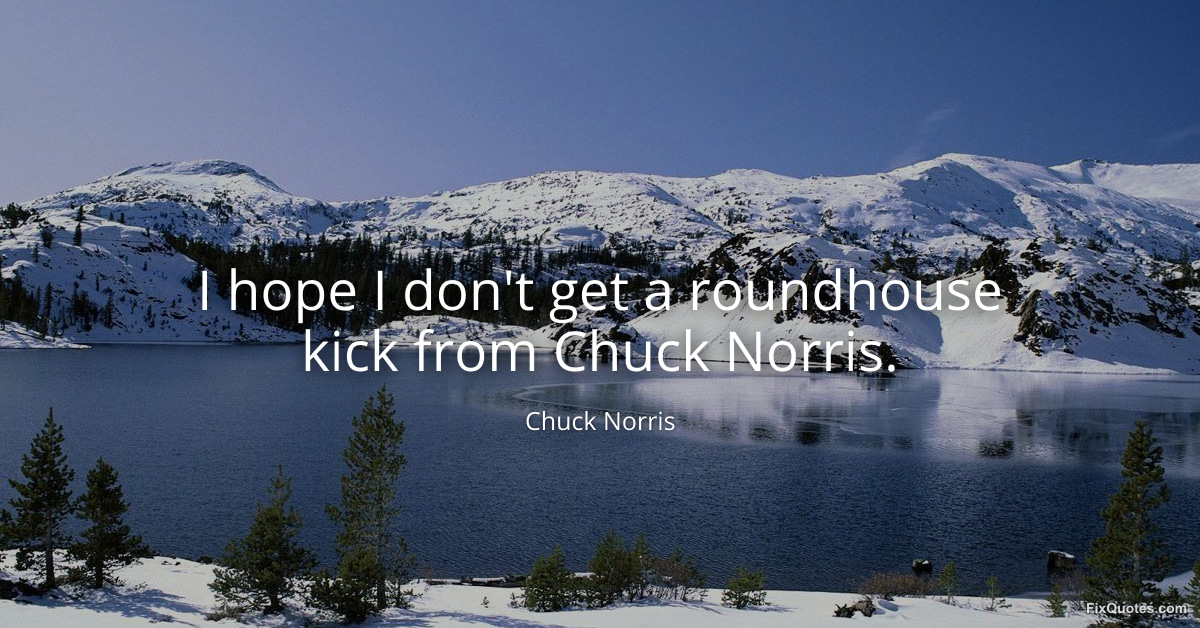 "I hope I don't get a roundhouse kick from Chuck Norris." FixQuotes, 20 Mar. 2026, https://fixquotes.com/quotes/i-hope-i-dont-get-a-roundhouse-kick-from-chuck-186243/. Accessed 28 Mar. 2026.