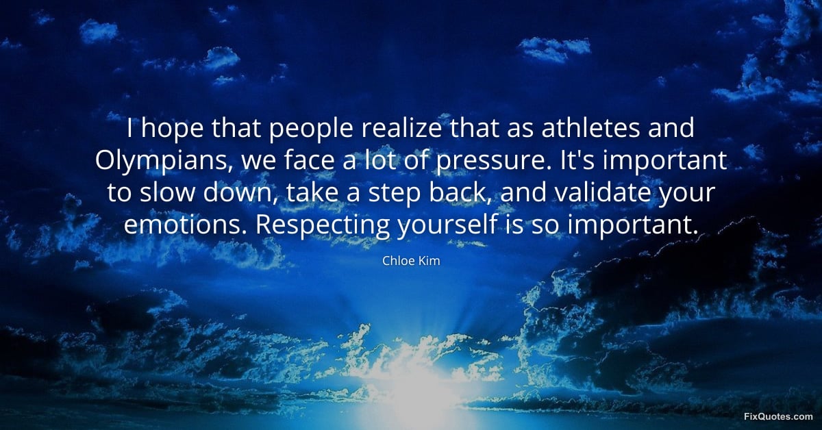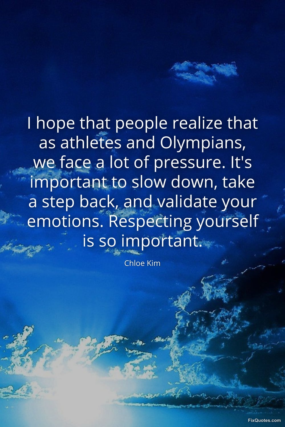 Kim, Chloe. (2026, February 23). I hope that people realize that as athletes and Olympians, we face a lot of pressure. It's important to slow down, take a step back, and validate your emotions. Respecting yourself is so important. FixQuotes. https://fixquotes.com/quotes/i-hope-that-people-realize-that-as-athletes-and-185661/