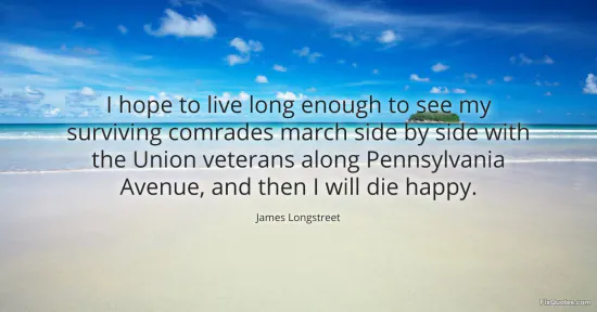 Longstreet, James. (2026, January 15). I hope to live long enough to see my surviving comrades march side by side with the Union veterans along Pennsylvania Avenue, and then I will die happy. FixQuotes. https://fixquotes.com/quotes/i-hope-to-live-long-enough-to-see-my-surviving-147043/