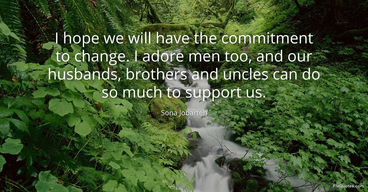 Jobarteh, Sona. (2026, February 16). I hope we will have the commitment to change. I adore men too, and our husbands, brothers and uncles can do so much to support us. FixQuotes. https://fixquotes.com/quotes/i-hope-we-will-have-the-commitment-to-change-i-185515/