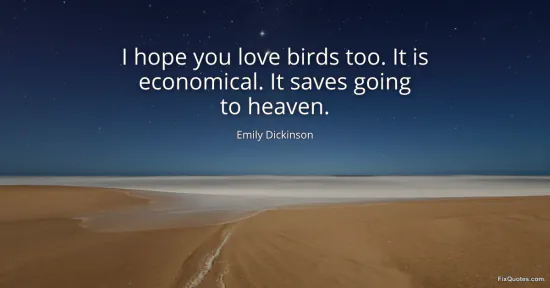 Dickinson, Emily. "I hope you love birds too. It is economical. It saves going to heaven." FixQuotes. January 18, 2026. https://fixquotes.com/quotes/i-hope-you-love-birds-too-it-is-economical-it-19393/.